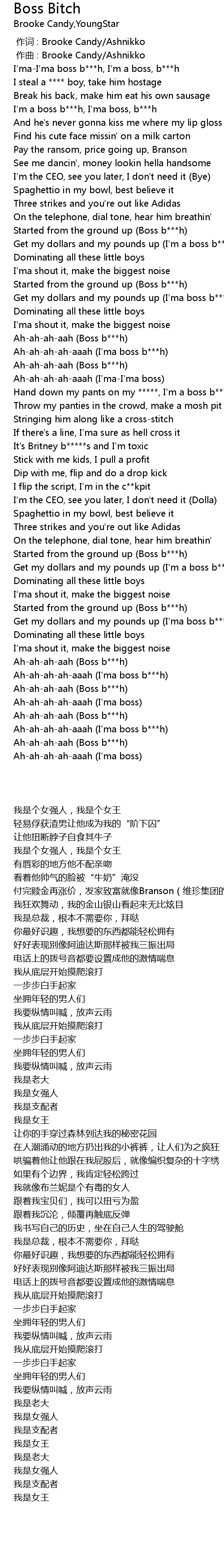 | [00:09.53] | I'ma-I'ma boss b***h, I'm a boss, b***h |