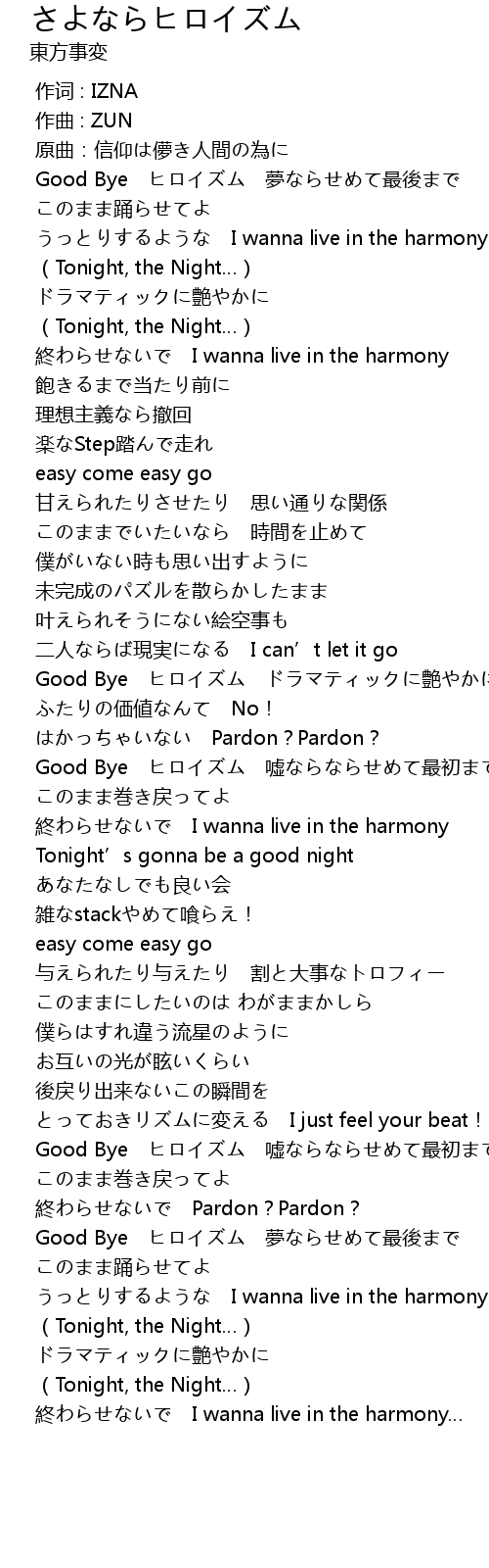 | [01:28.934] | Good Bye ヒロイズム ドラマティックに艶やかに |