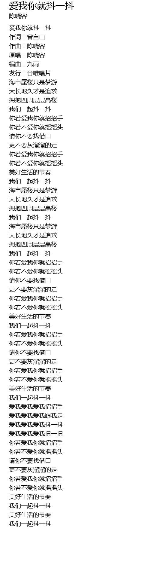 | [02:00.19] | 我们一起抖一抖 |