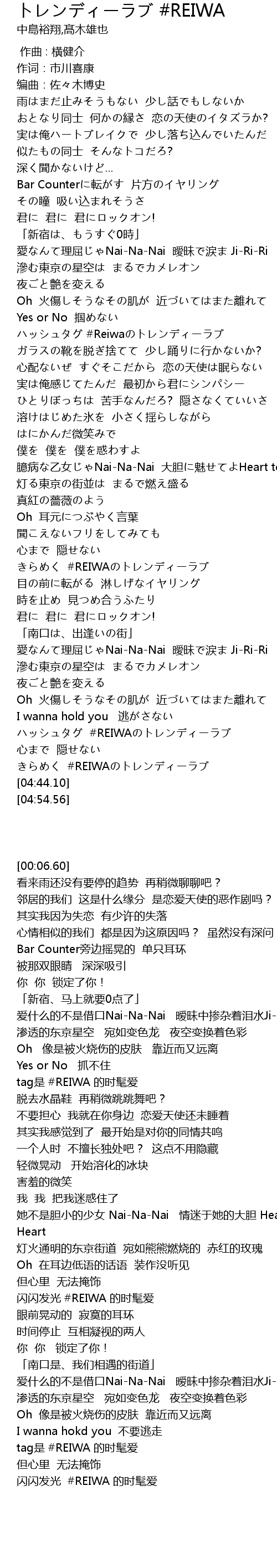 | [04:21.56] | ハッシュタグ #REIWAのトレンディーラブ |