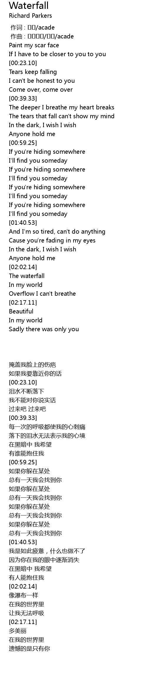 | [02:02.47] | The waterfall |