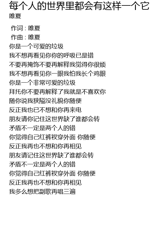 | [00:02.688] | 你是一个可爱的垃圾 |