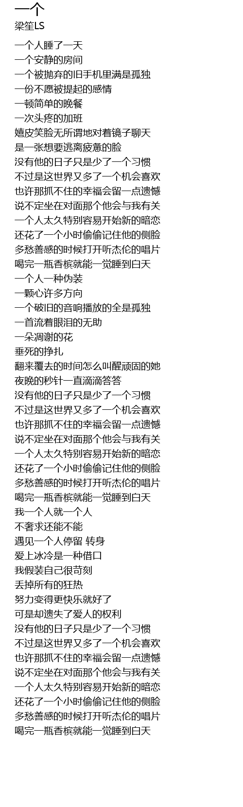 | [00:59.440] | yí ge rén tài jiǔ tè bié róng yì kāi shǐ xīn de àn liàn |