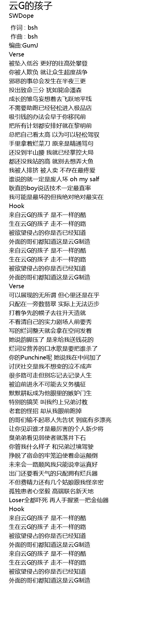 | [01:15.462] | 来自云G的孩子 是不一样的酷 |