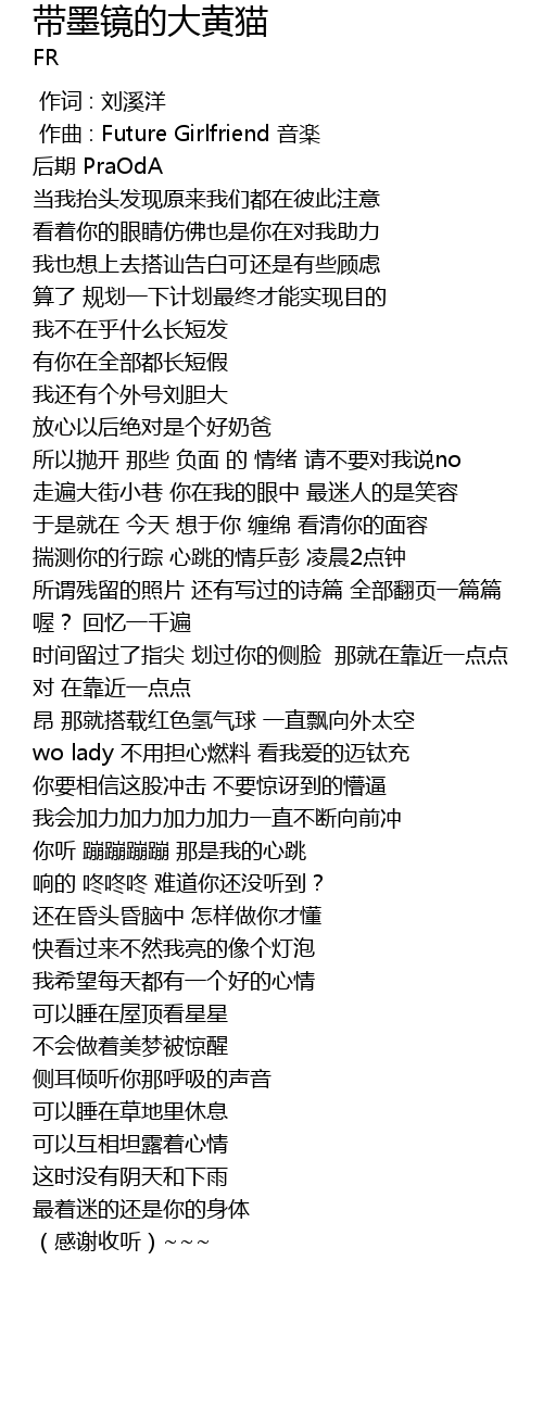 | [00:01.000] | zuo qu : Future Girlfriend yin le |