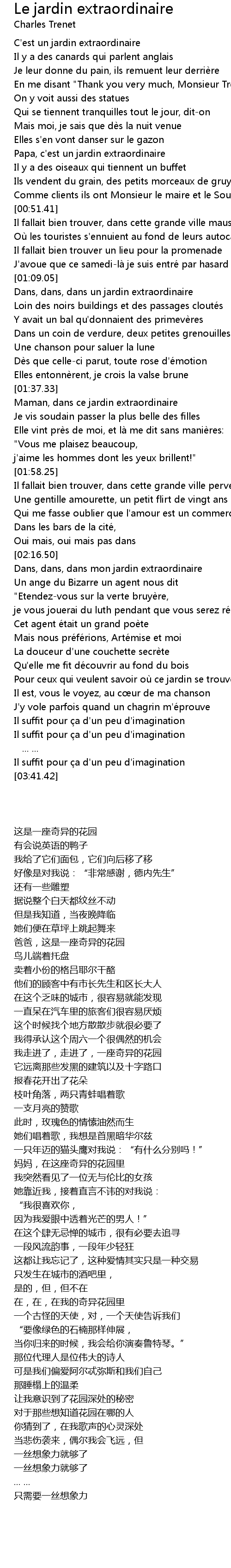 | [02:16.55] | Dans, dans, dans mon jardin extraordinaire |