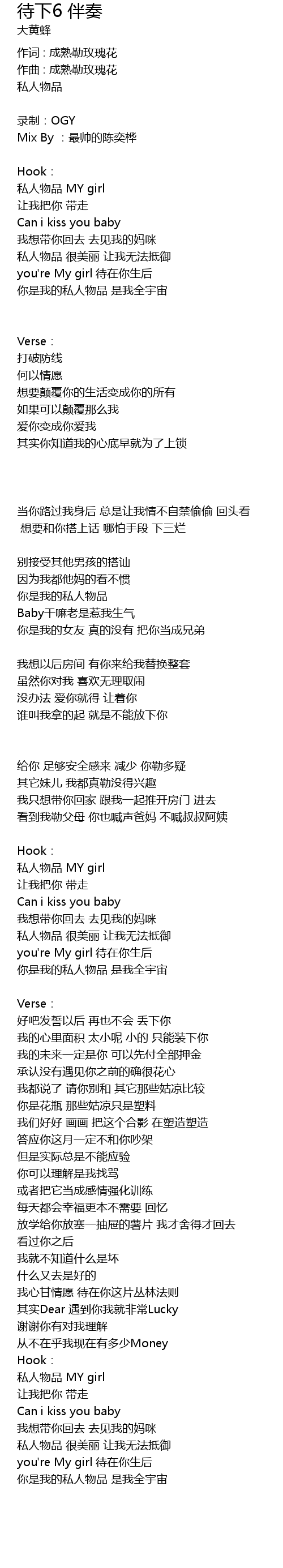 | 作词 : 成熟勒玫瑰花 | |