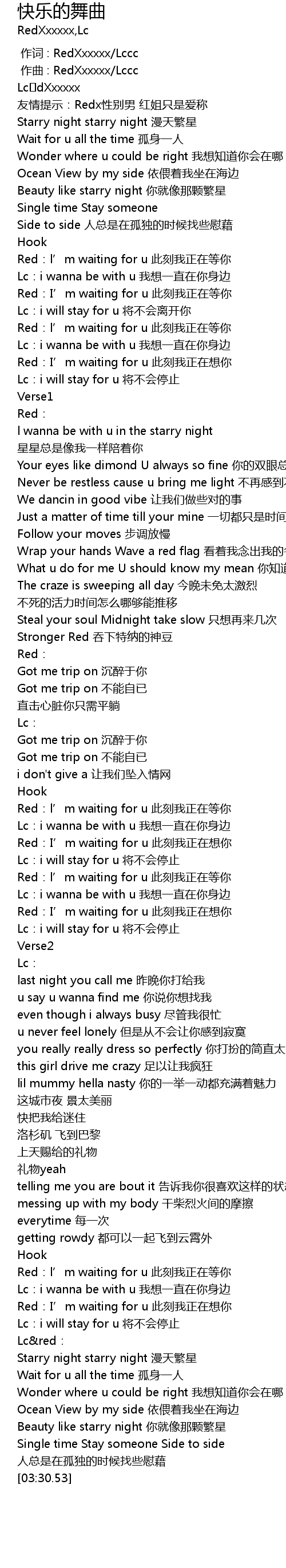 | [00:38.22] | Red: l' m waiting for u ci ke wo zheng zai deng ni |