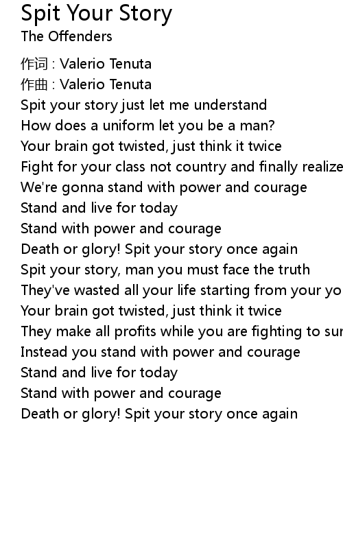 | Death or glory! Spit your story once again |