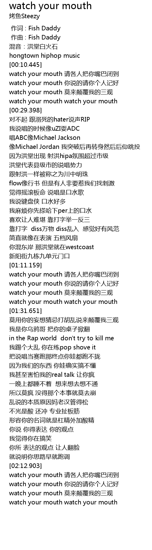| [02:15.910] | watch your mouth 你说的请你个人记好 |