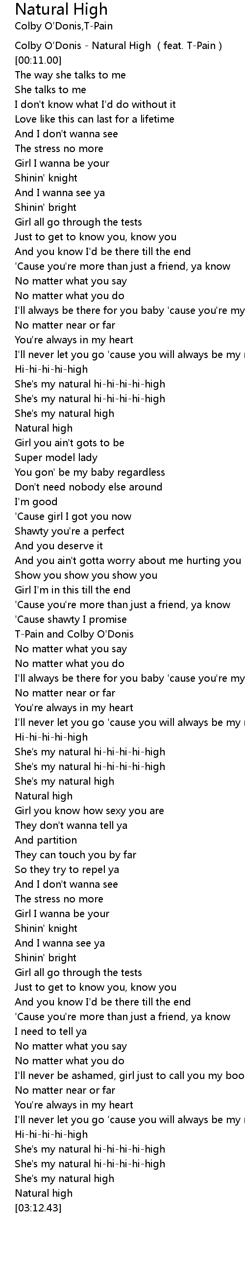 | [00:02.00] | Colby O'Donis - Natural High (feat. T-Pain) |
