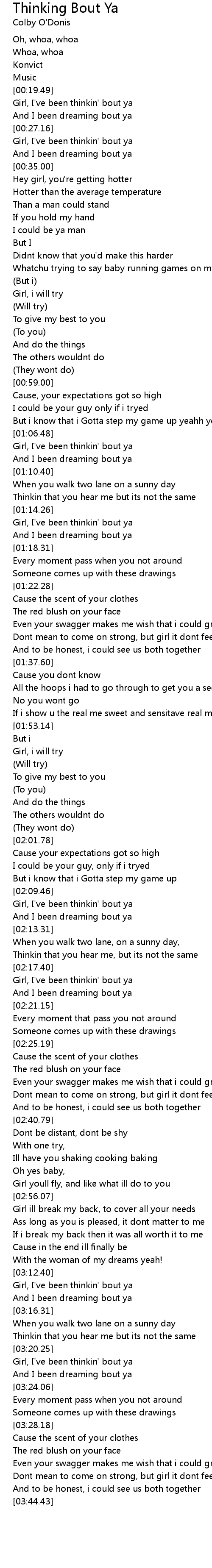 Girl, I've been thinkin' bout ya |
