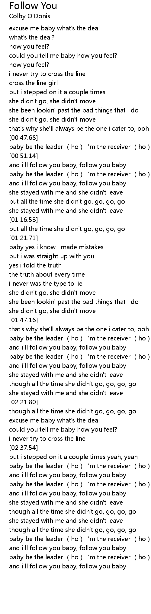 | [00:51.75] | and i' ll follow you baby, follow you baby |