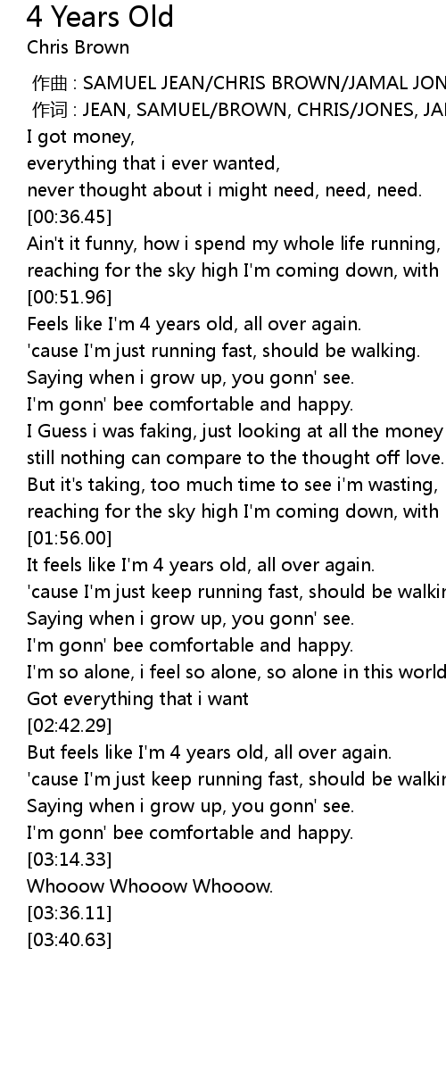 | [02:43.87] | But feels like I'm 4 years old, all over again. |