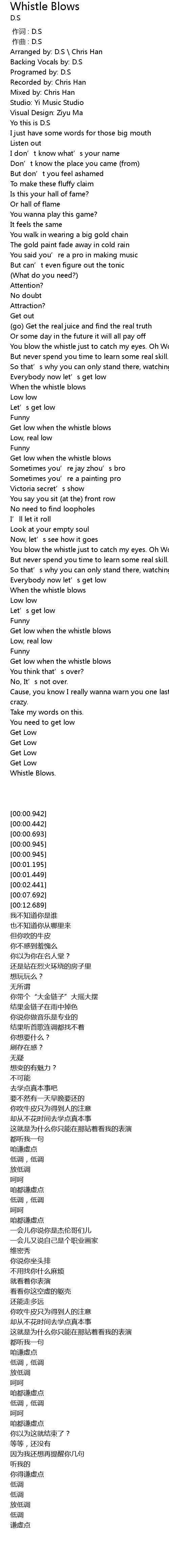 | [00:00.242] | Arranged by: D.S \ Chris Han |