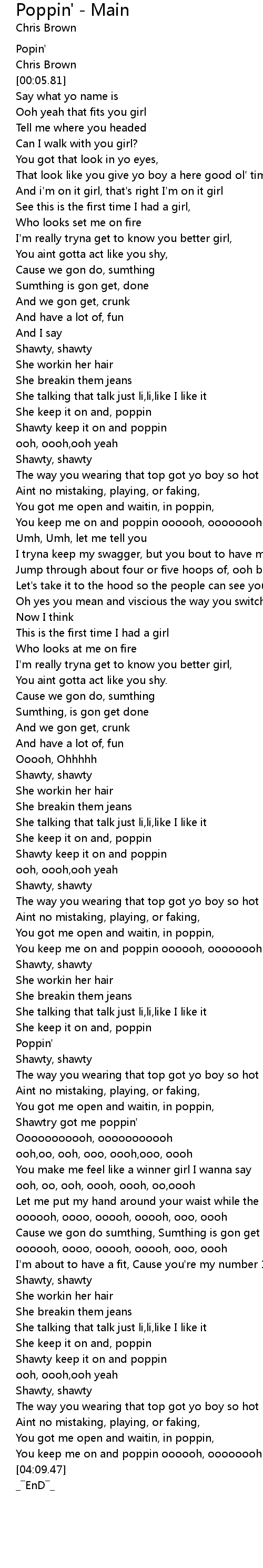 | [02:07.04] | Shawty keep it on and poppin |