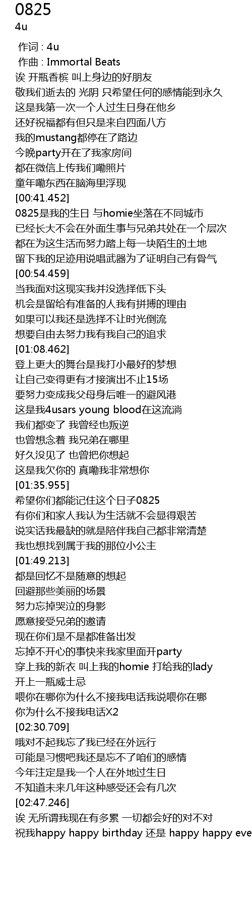 | [00:43.959] | 0825是我的生日 与homie坐落在不同城市 |