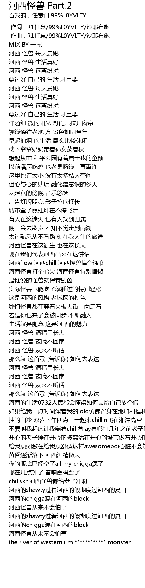 | [01:09.913] | 河西flow 河西chill 河西怪兽搞个通晚 |