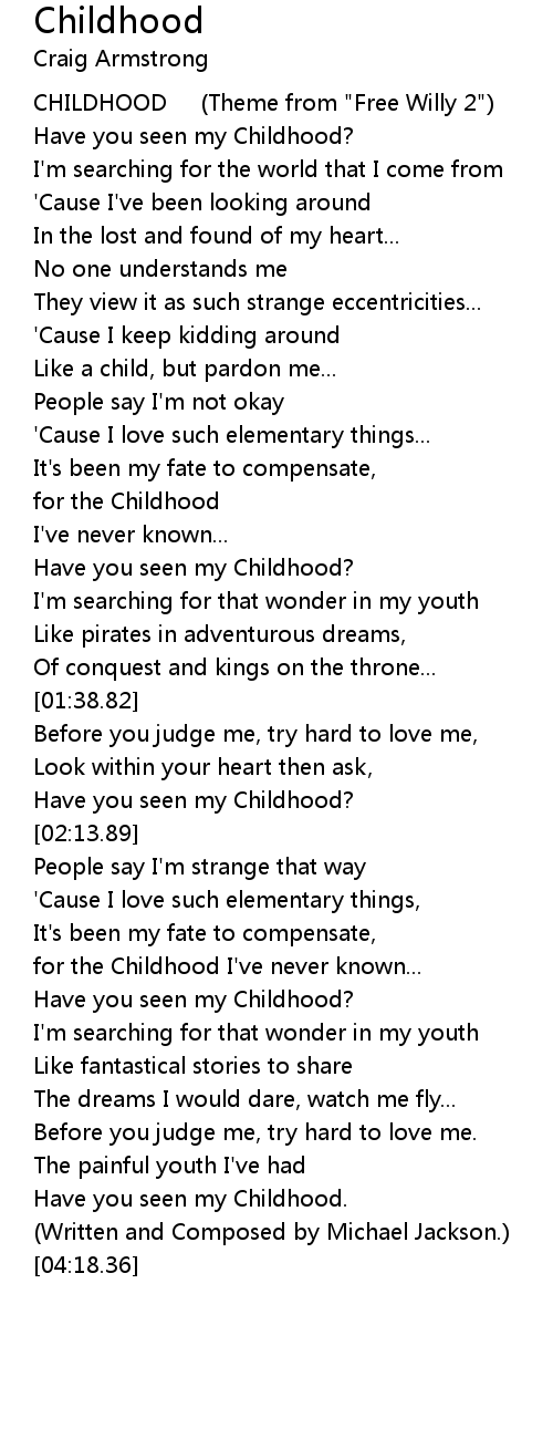 [00:00.20] CHILDHOOD (Theme from "Free Willy 2")