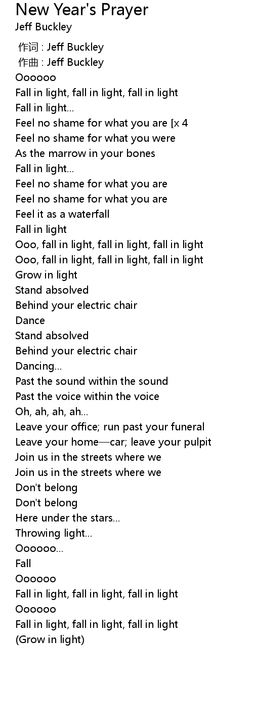 | [00:01.000] | 作曲 : Jeff Buckley |