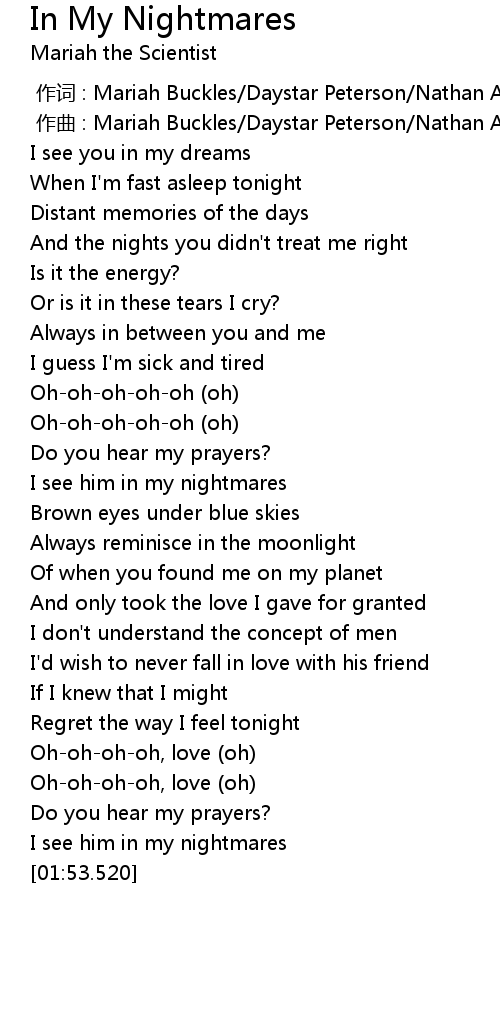 | [01:01.150] | I see him in my nightmares |