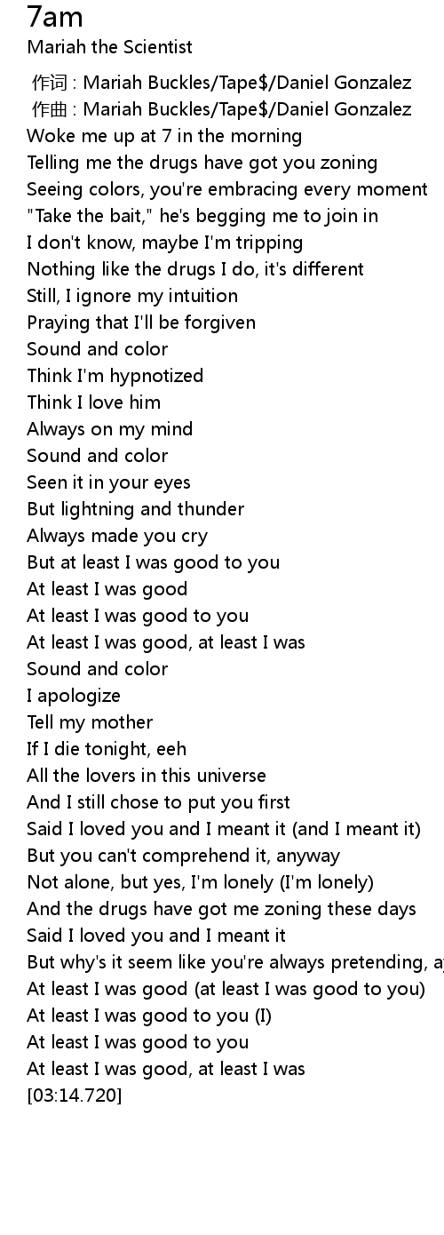 | [00:01.000] | 作曲 : Mariah Buckles/Tape$/Daniel Gonzalez |