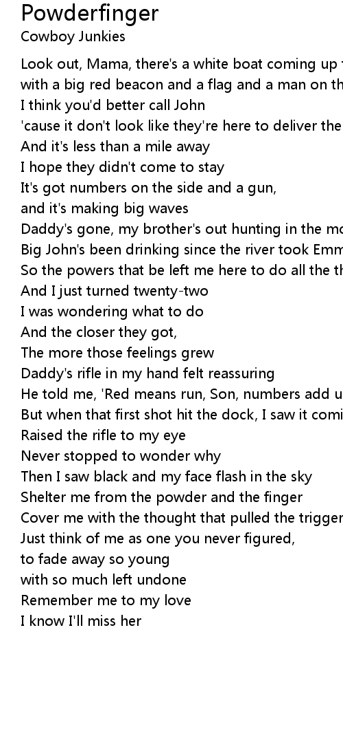 Shelter me from the powder and the finger |