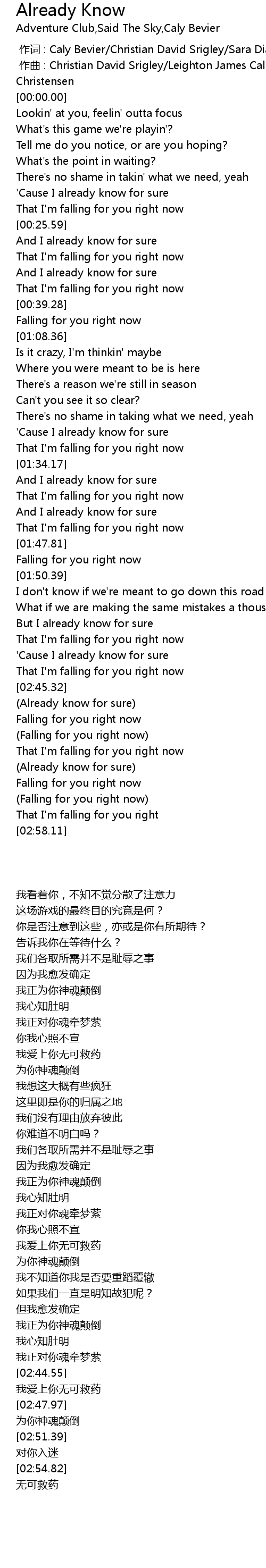 | [00:00.00] | 作词 : Caly Bevier/Christian David Srigley/Sara Diamond |