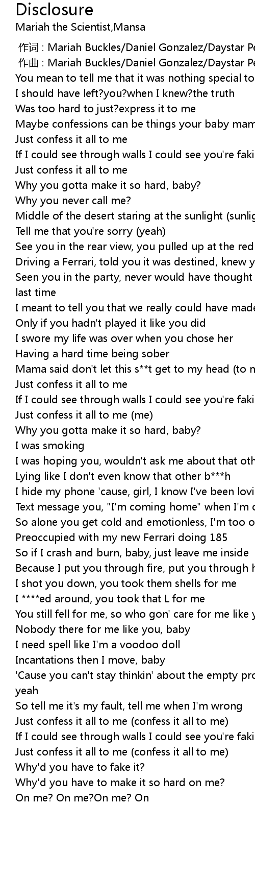 | [03:00.94] | Just confess it all to me (confess it all to me) |