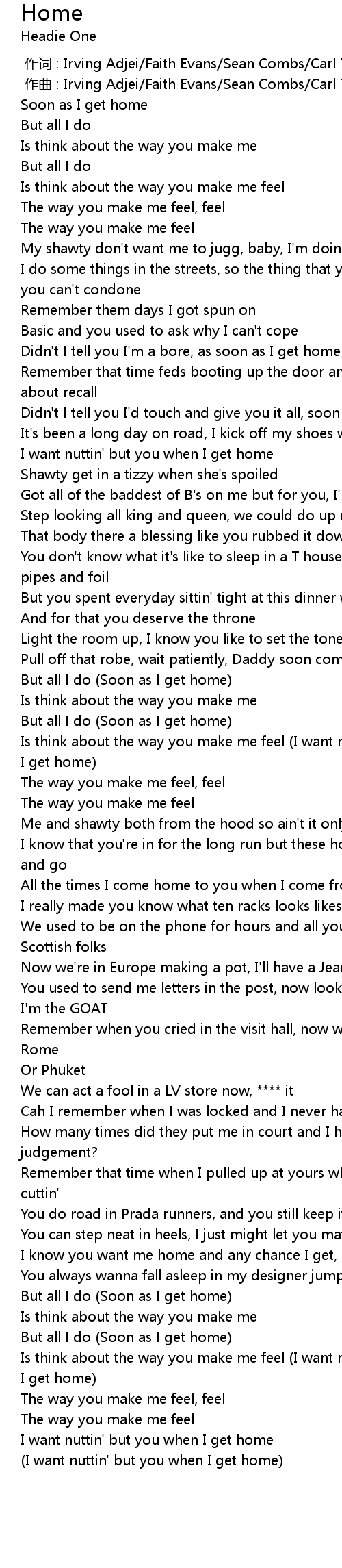 | [02:57.418] | Is think about the way you make me feel (I want nuttin' but you when I get home) |
