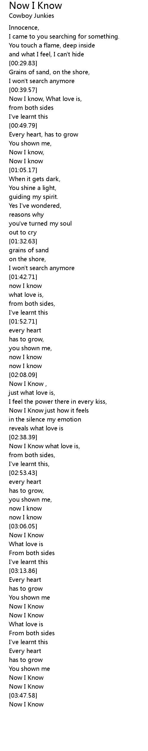 Now I know, |