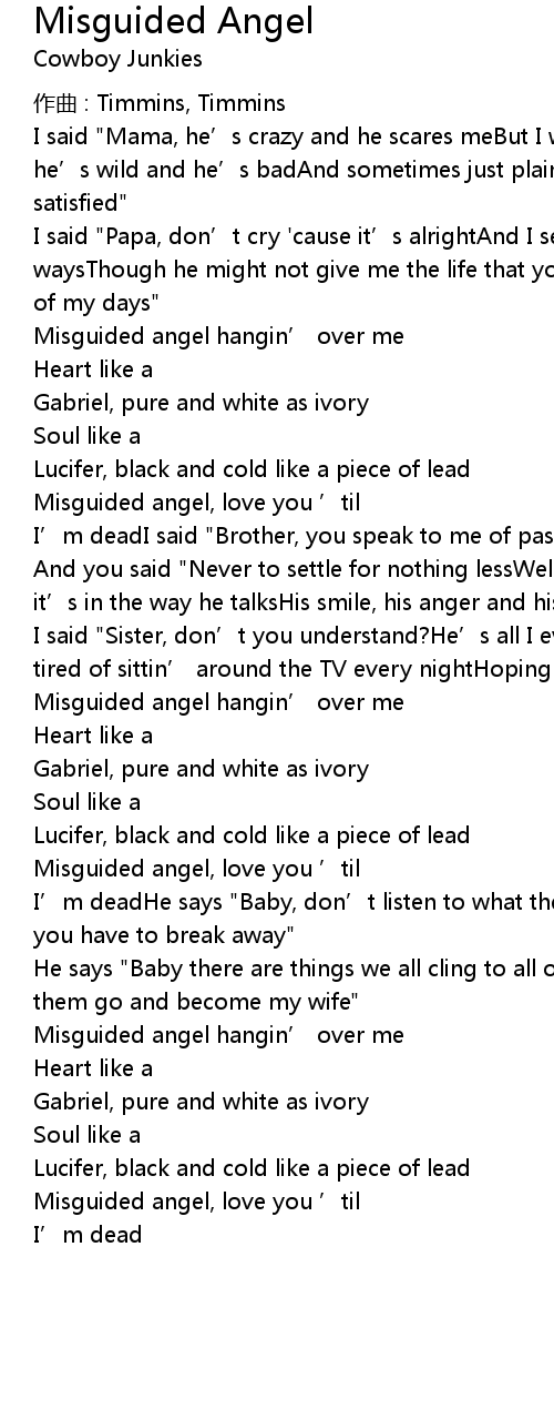 | Misguided angel, love you ' til | |