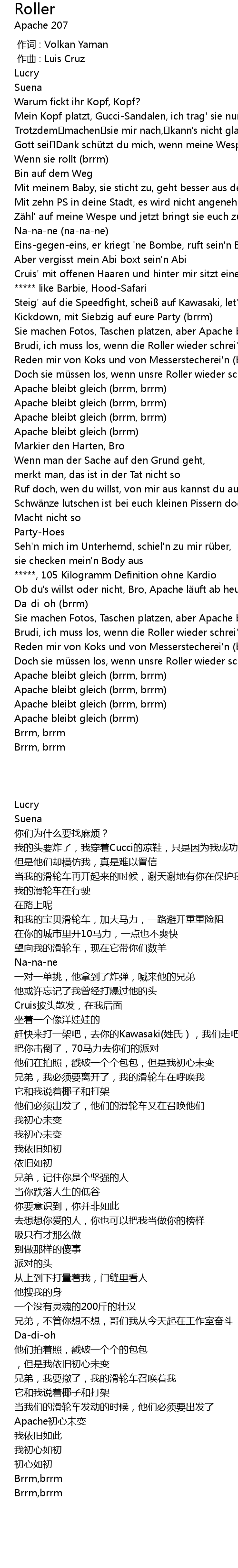 | [01:17.44] | Apache bleibt gleich brrm, brrm |