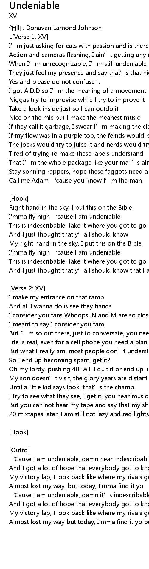| ‘Cause I am undeniable, damn it’s indescribable | |