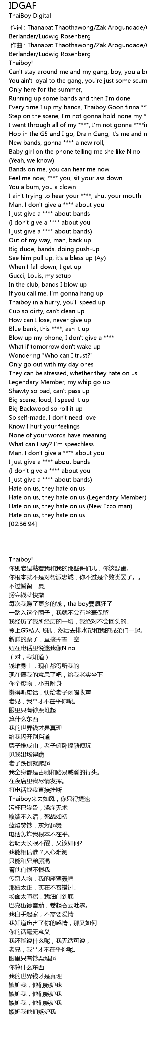 | [00:27.39] | Every time I up my bands, Thaiboy Goon finna ****ing go dumb |