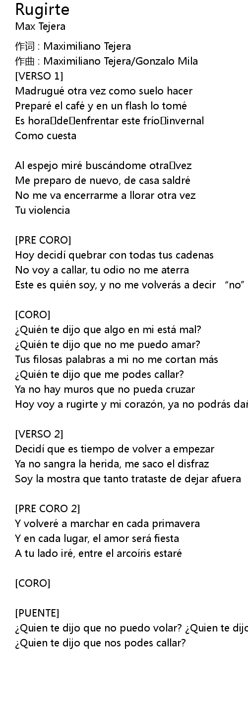 | Hoy voy a rugirte y mi corazó n, ya no podrá s da ar | |