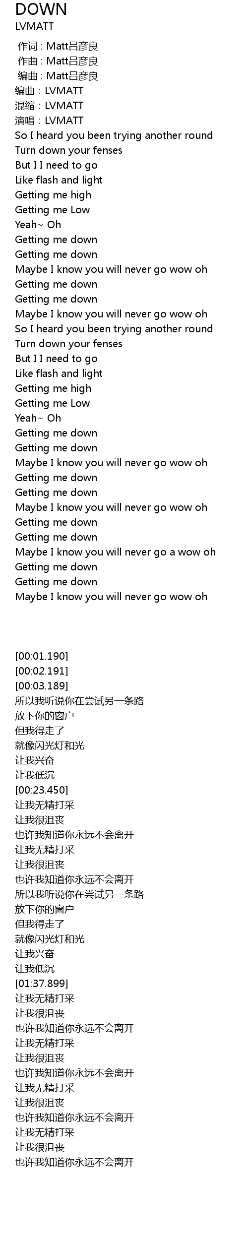 | [00:00.000] | 作词 : Matt吕彦良 |