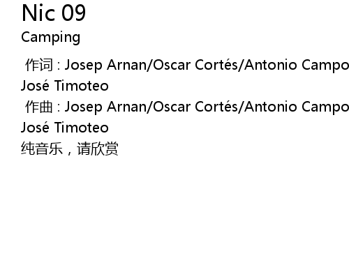 | [00:01.000] | zuo qu : Josep Arnan Oscar Corte s Antonio Campoy Xavier Font Juan Jose Timoteo |