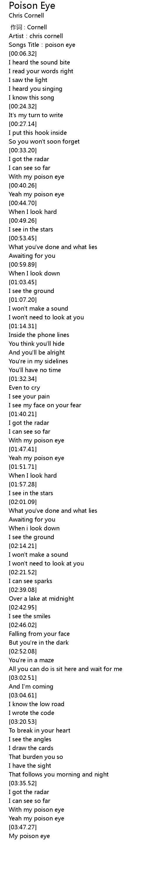 | [00:03.63] | Songs Title:poison eye |