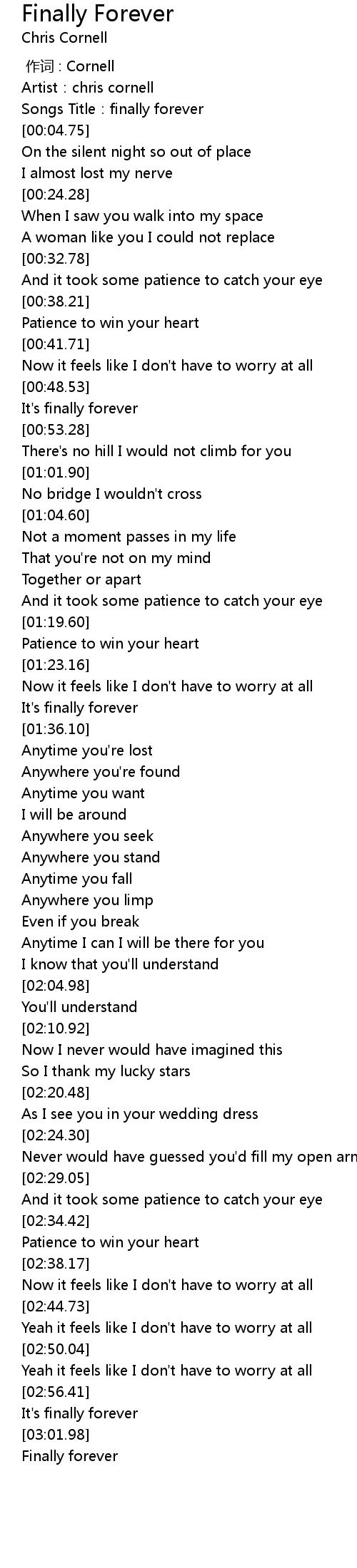 | [00:49.15] | It's finally forever |