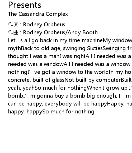 | Artist | The Cassandra Complex |