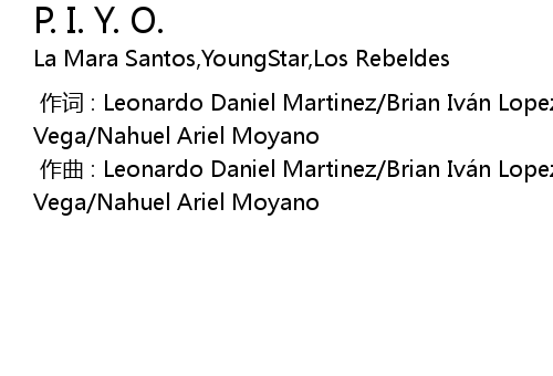 | [00:00.00-1] | 作曲 : Leonardo Daniel Martinez/Brian Iván Lopez/Eduardo Ariel Vega/Nahuel Ariel Moyano |