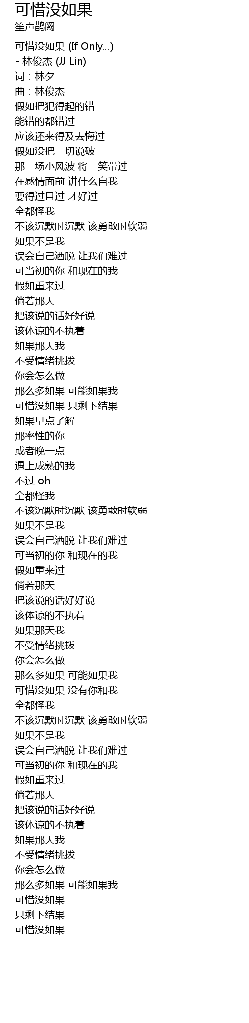 | [00:00.583] | 可惜没如果 (If Only…) |