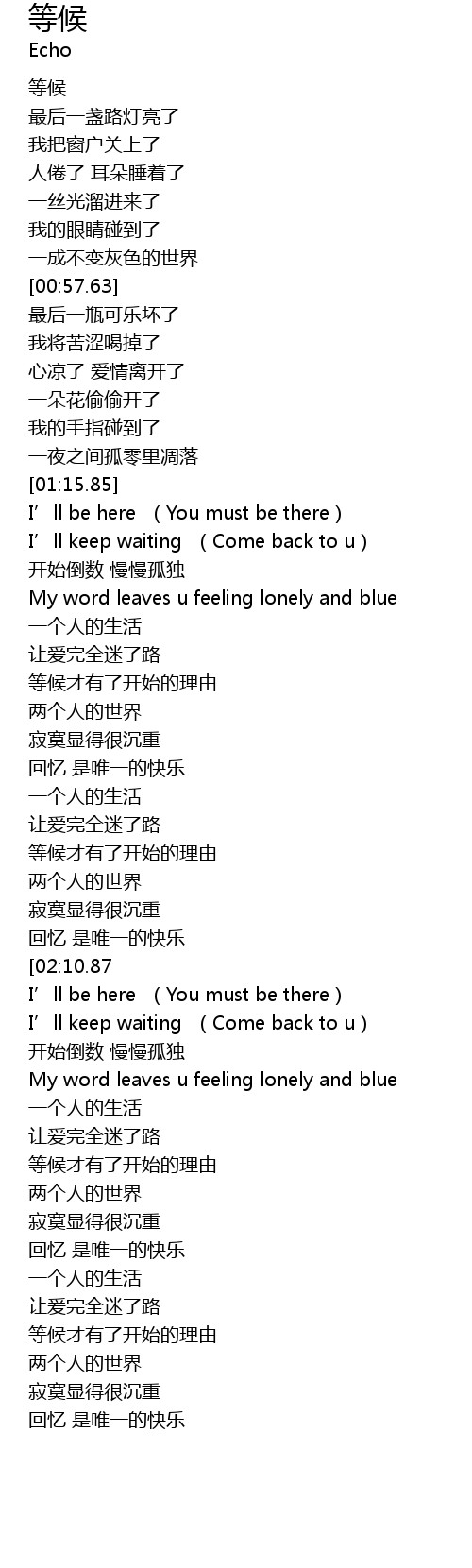 | [01:20.67] | I' ll keep waiting Come back to u |