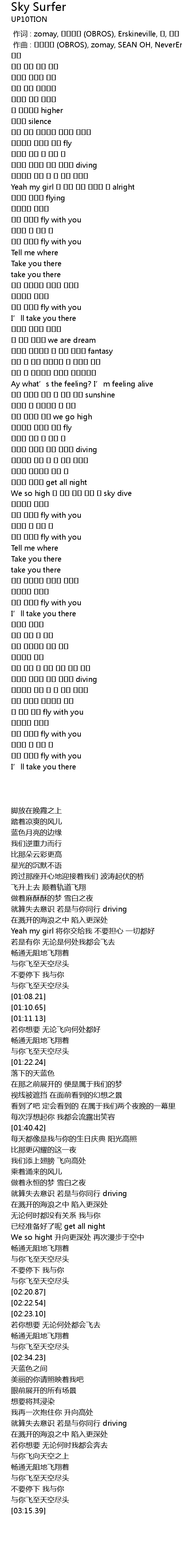 | [01:04.76] | 하늘 끝까지 fly with you |