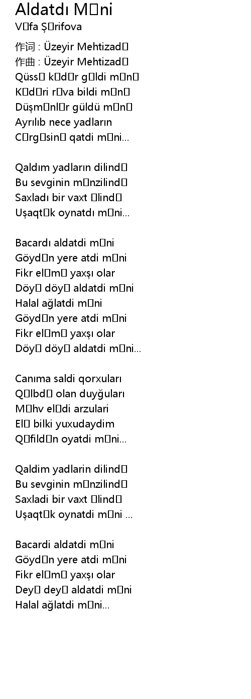 | 作词 : Üzeyir Mehtizadə | |