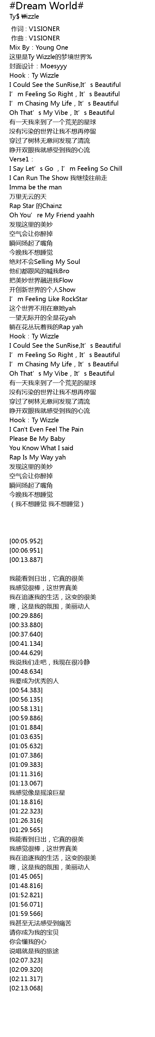 | [00:06.951] | 这里是Ty Wizzle的梦境世界% |