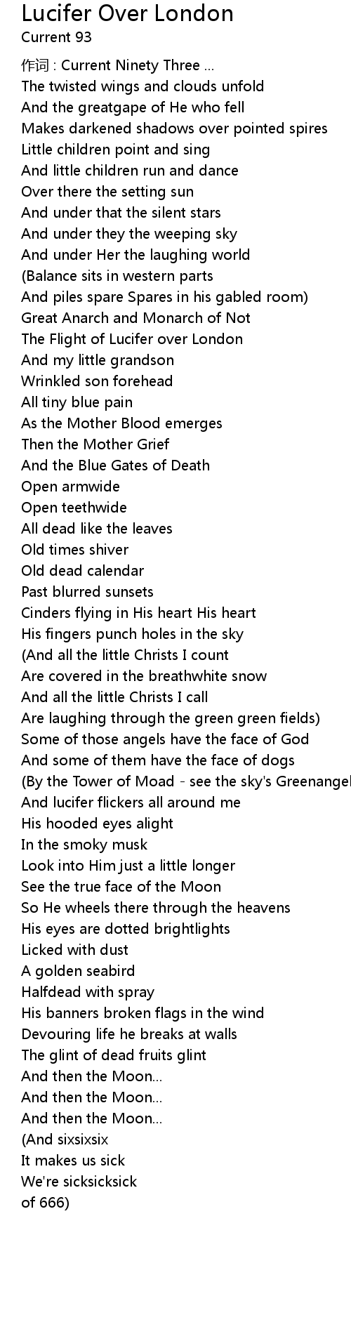 | Song | Lucifer Over London |