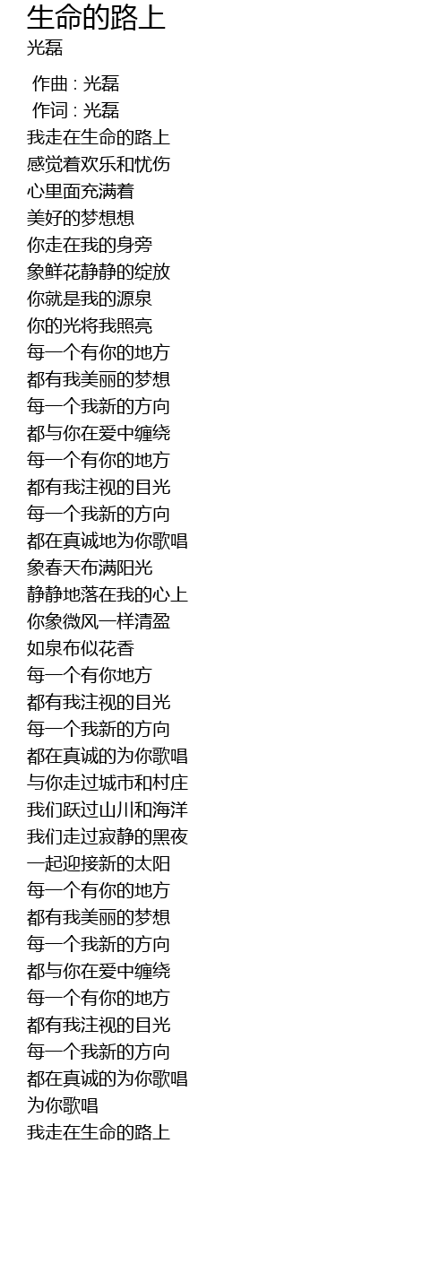 | [05:08.75] | 我走在生命的路上 |