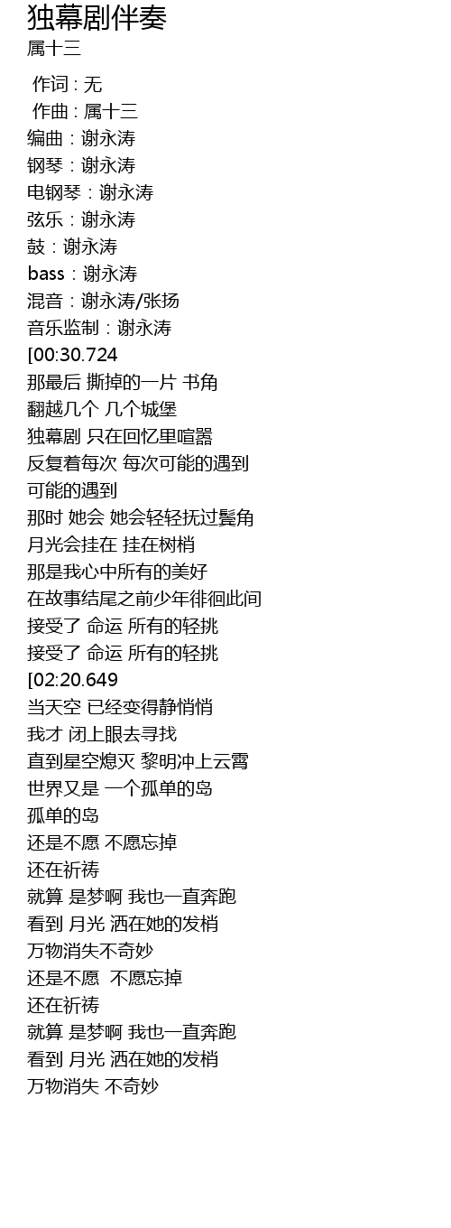 | [00:45.325] | 独幕剧 只在回忆里喧嚣 |